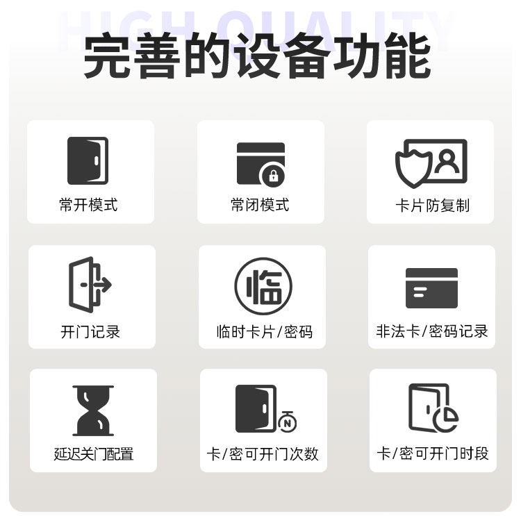 澄迈这款智能门锁提供室内门锁和防盗门锁两种选择,其中室内门锁尺寸为 2806521mm,适配 5050 锁体;防盗门锁尺寸为 3657021mm,适配 6068 锁体,可满足不同场景的安装需求。它采用铝合金一体成型搭配钢化玻璃面板打造,兼具坚固耐用的品质与简洁美观的视觉效果。门锁支持蓝牙无线通讯,解锁方式丰富多样,密码、卡片、蓝牙、钥匙四种方式随心选择,满足不同使用习惯与应急需求。其工作温度范围为 - 20~70℃,能适应多数地区的气候条件,采用碱性电池供电,安装更换便捷,是兼具安全性与实用性的门锁选择。